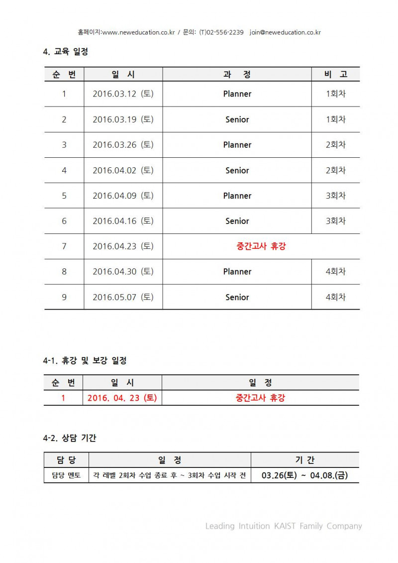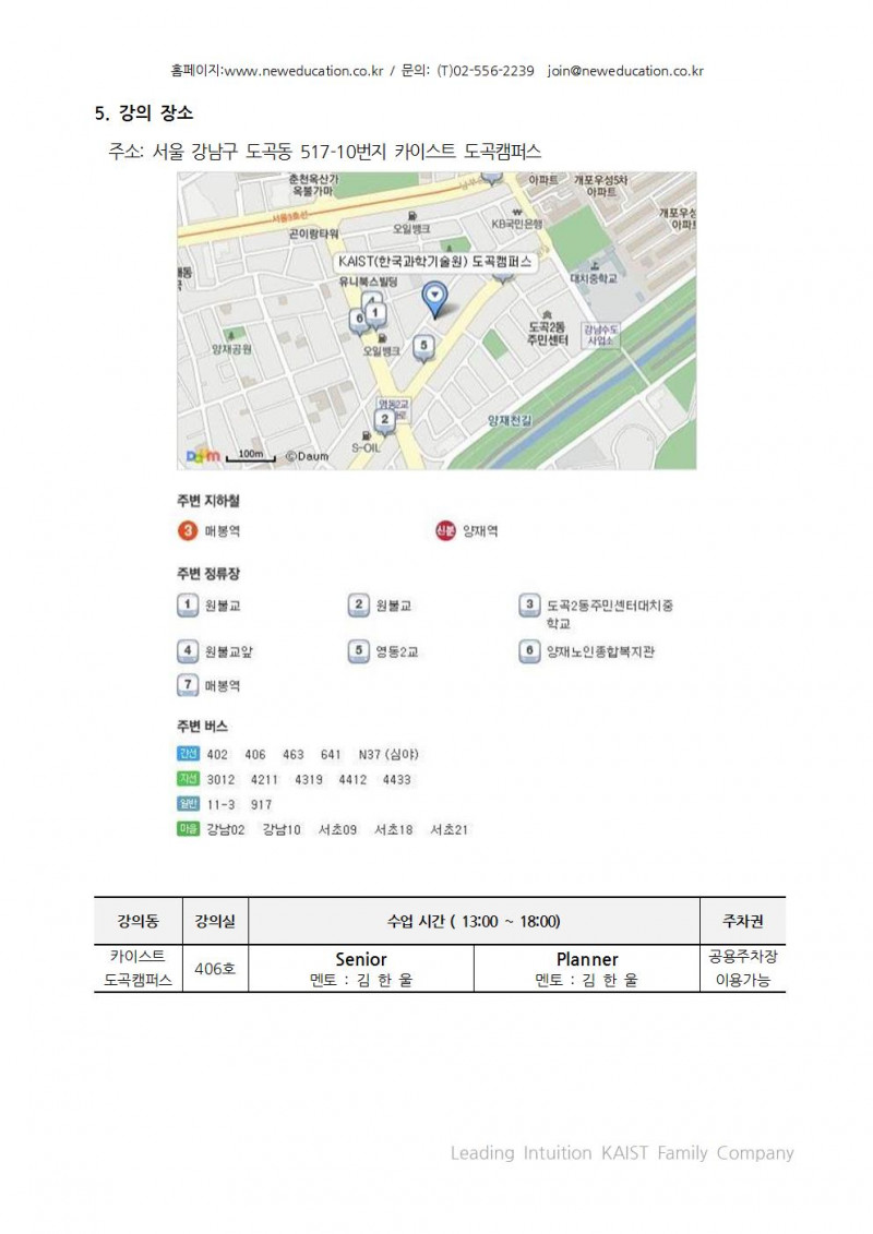 [공지] 2016 봄 KAIST도곡 개강안내문